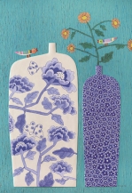 여기에 집 앞 벌판의 개울에서 남동생이 잡아와 갖고 놀던 물고기가 팔딱이며 도자기와 꽃들을 오가게 만들어 여백의 허전함을 달래고자 했다.